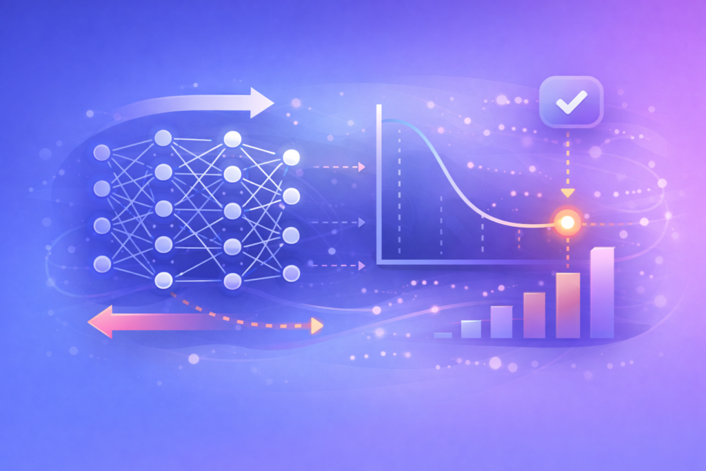 - 學習機制:這是現代深度學習(Deep Learning)的基礎。當模型做出預測時,系統會計算預測值與真實值之間的誤差。反向傳播算法會將這個誤差「倒推」回去,計算每一層神經元對這個錯誤「貢獻」了多少,進而調整權重以減少下一次的錯誤。