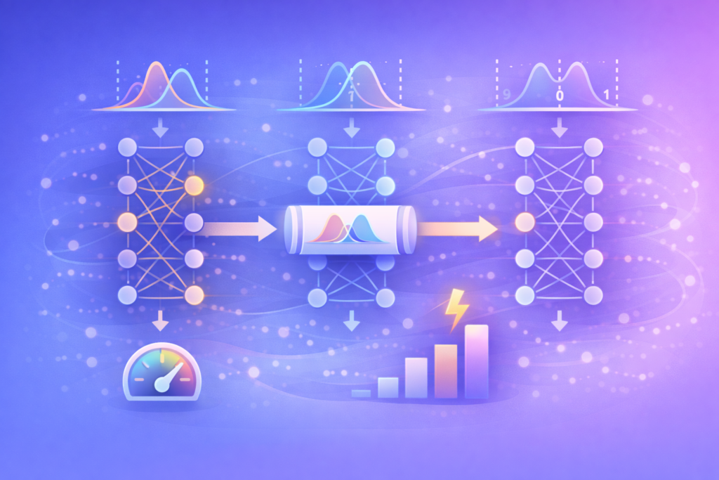 實際例子: 想像你要教一群學生(神經網絡的層),但每次上課你用的教科書字體大小、語言難度都劇烈跳動(數據分佈改變),學生很難適應。Batch Normalization 就像是規定所有教科書必須使用統一的格式和難度,這樣學生就能學得更快、更穩定。