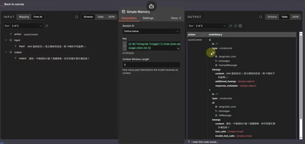 2. Session ID: 點擊 Expression,選擇 {{ $node["Telegram Trigger"].json.message.chat.id }} (確保每個用戶有獨立記憶)。
