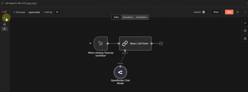 Step 1: 新增 OpenRouter Chat Model 節點